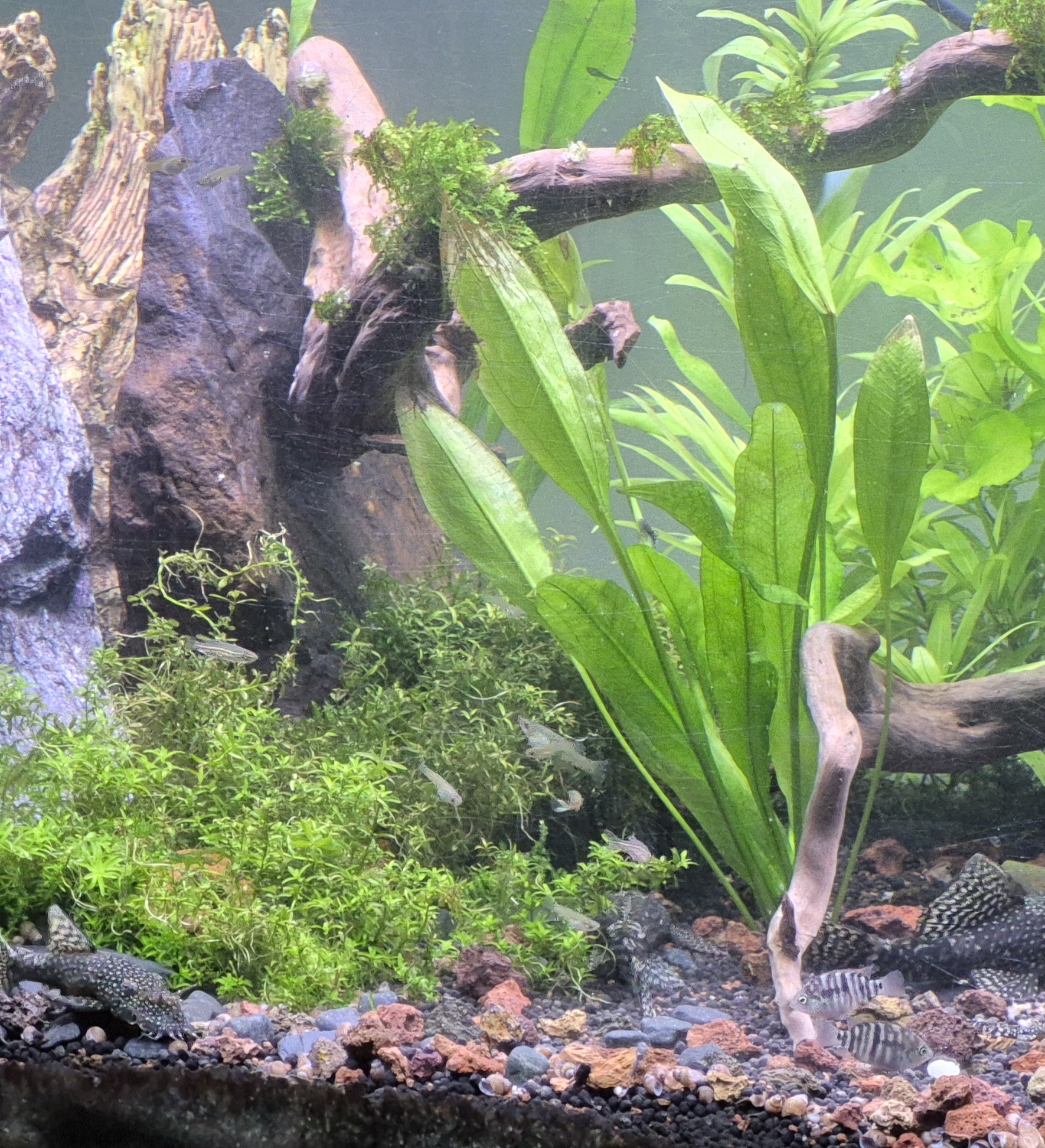 Echange possible contre crevettes amano ou neo caridina bleue, danio tinwini, galaxy, emerald dwarf, une longue racine, plantes monte carlo, mousses, anubias.
