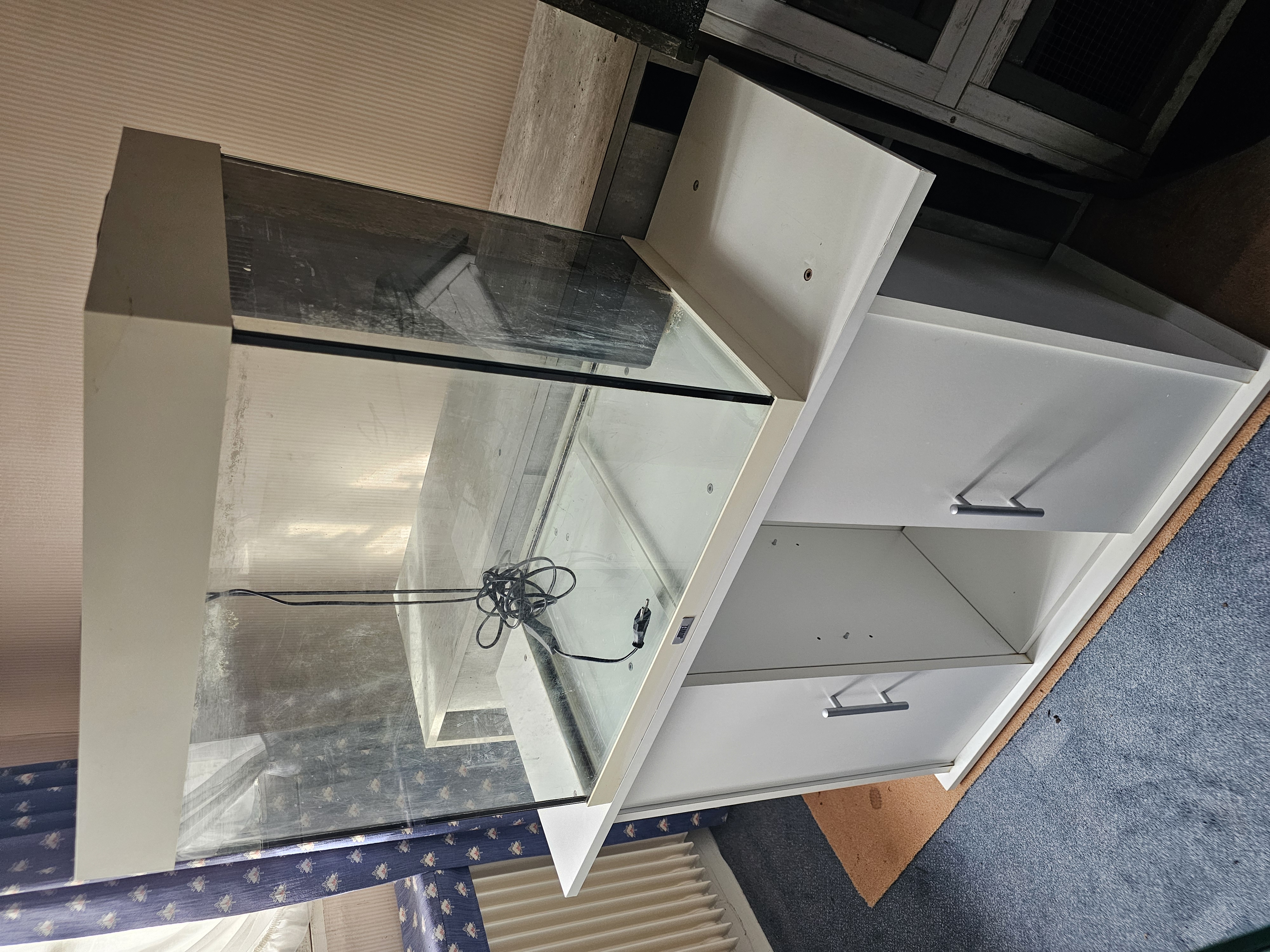A vendre ce magnifique aquarium blanc d'un bon volume de 136L. Le meuble blanc est compris dans le prix. 🥰