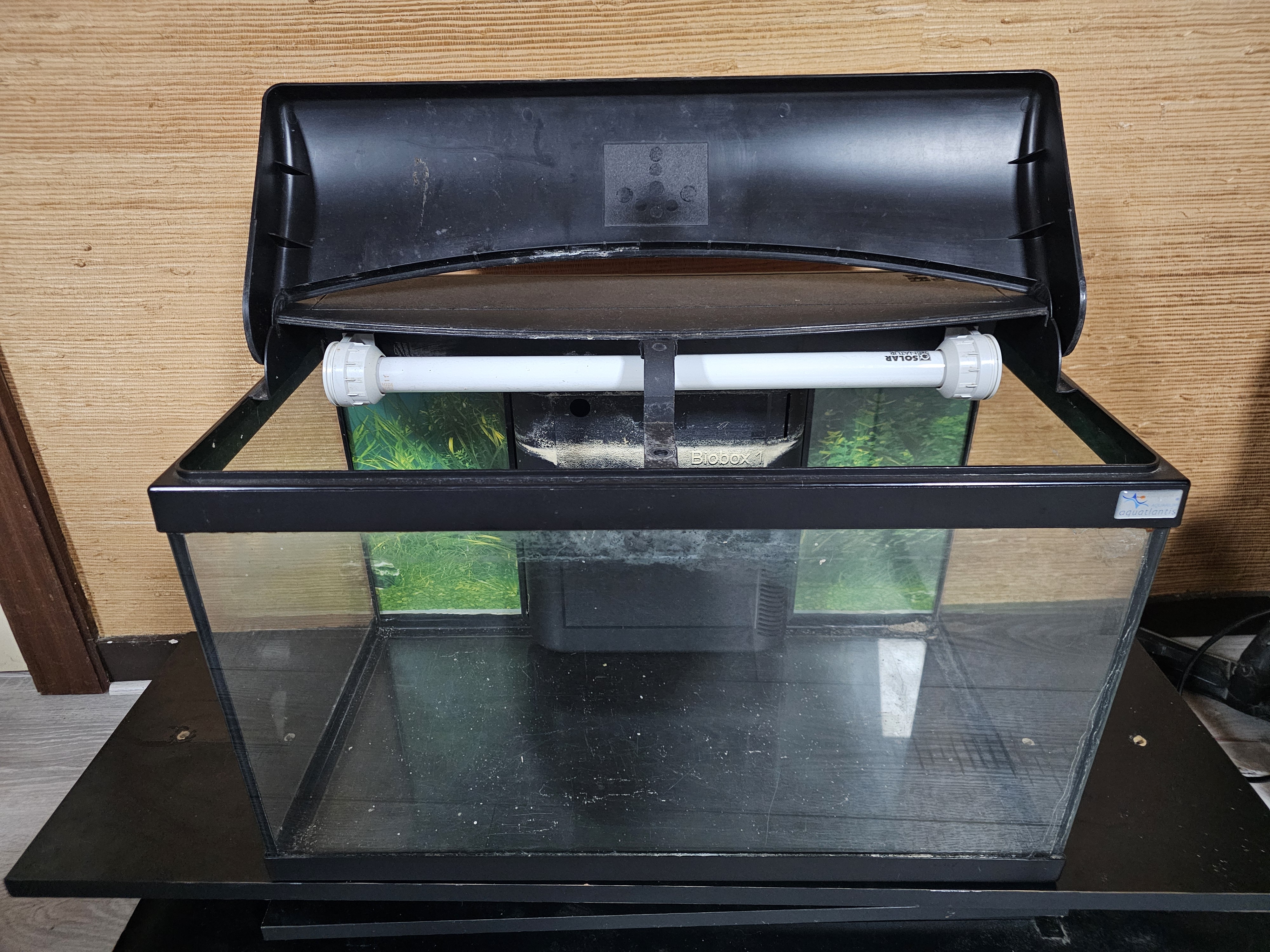 A venir chercher un aquarium de 60L cuve nue noir. Très bon état, ne fuit pas.