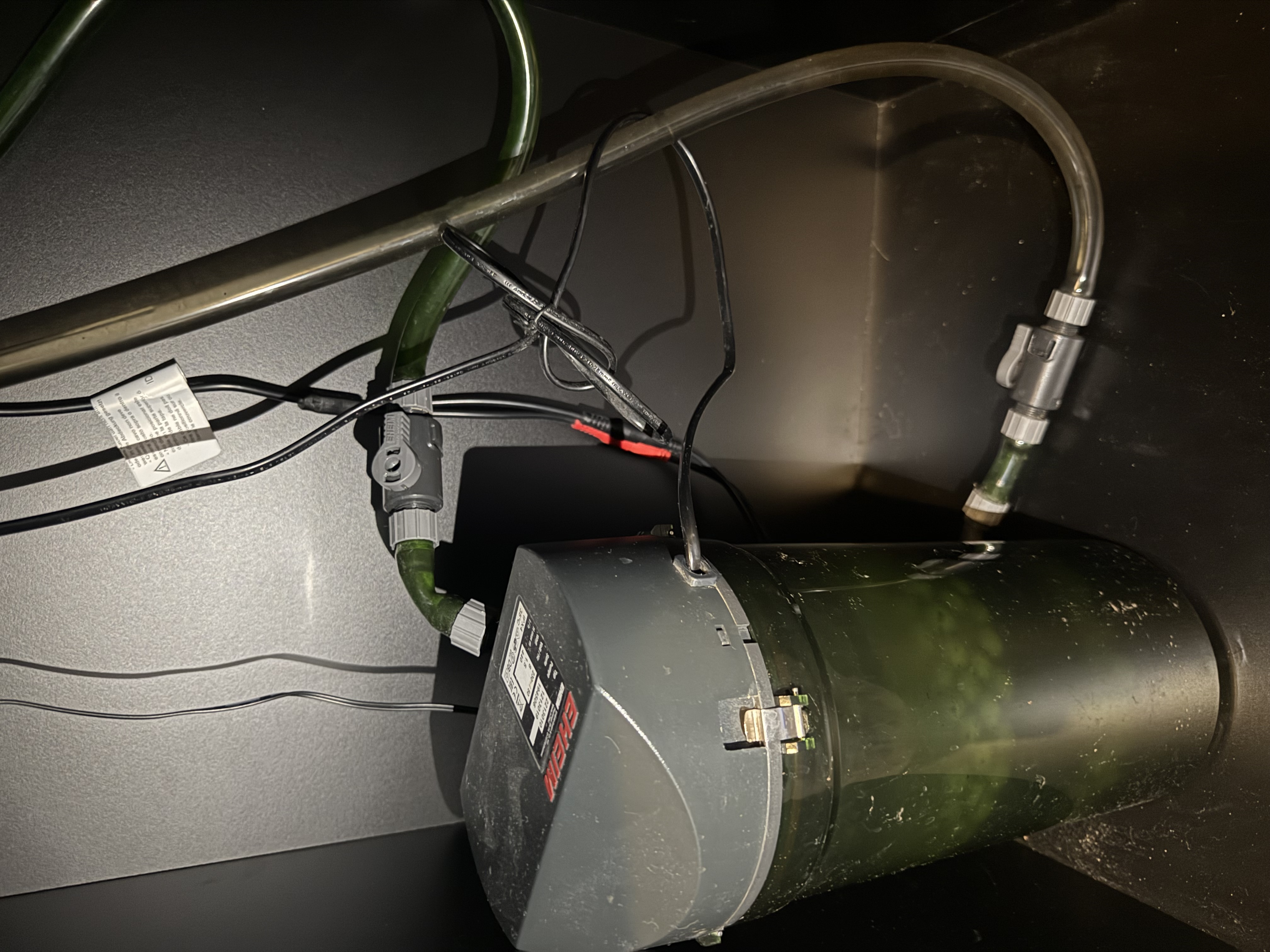 La pompe intégrée est neuve car je ne l'ai pas utilisé à la place j'ai installé un système de pompe de qualité, il s'agit d'un filtre extérieur de la marque Eheim d'une capacité de 250 litres et d'une valeur de 70€ qui est vendu avec l'aquarium (cycle de bactérie optimum).