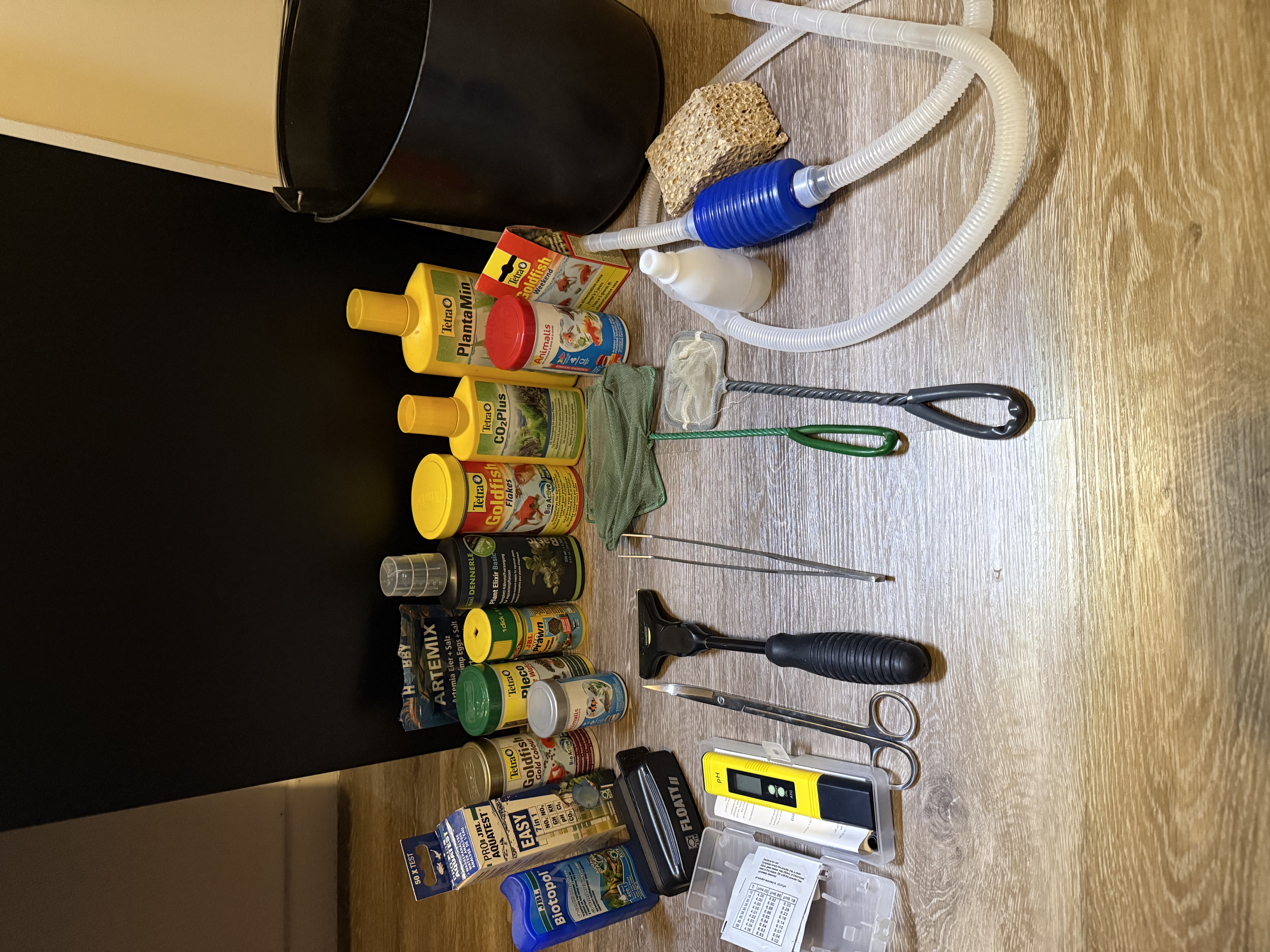 Je vends tous le matos avec Lampe intégrée, nourriture, distributeur, produits, sceau, lave vitre aimanté, ciseaux incurvés, pince, perche lave vitre, prise programmable...