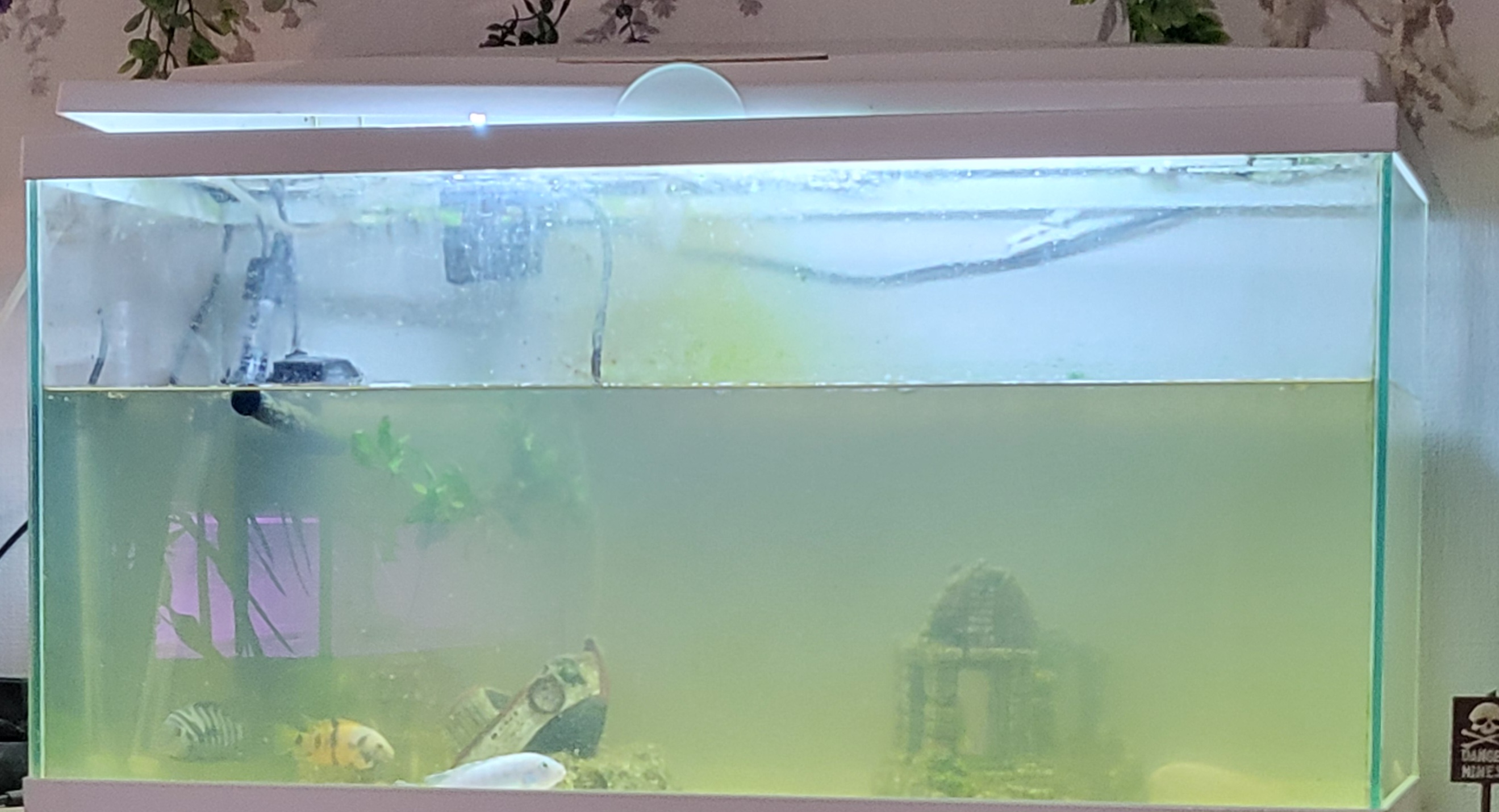 Aquarium blanc complet 100l thermosta lumière filtre bulleur et son contenu