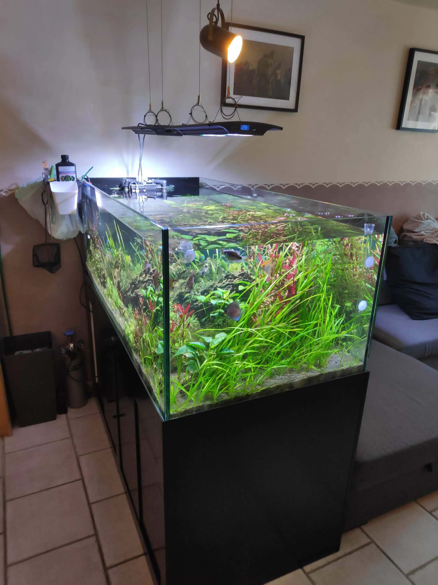 Bonjour Vend aquarium fait sur mesure avec son meuble longueur 1 m 50 profondeur 70 cm et 53 de haut pour plus de renseignements veuillez me contacter actuellement mise en eau pour montrer qu'il est étanche.