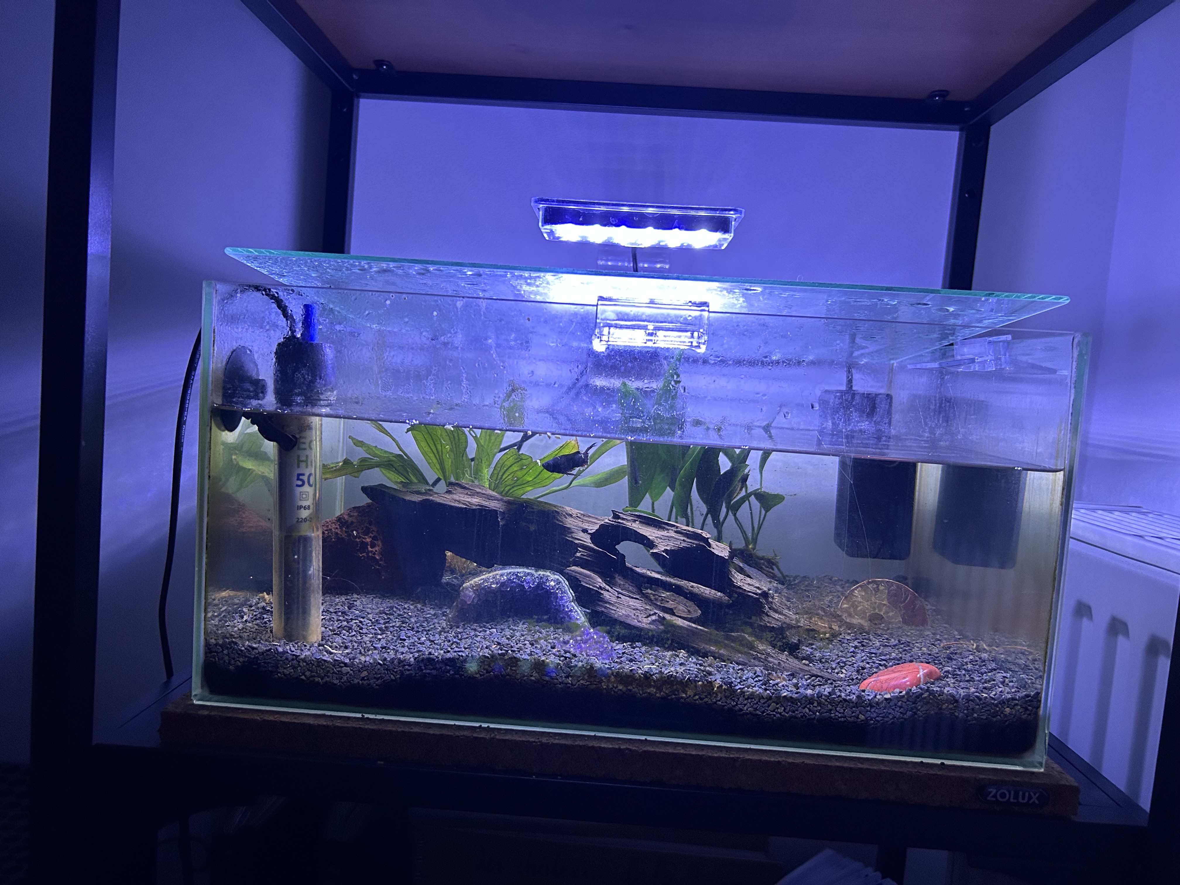 Aquarium fonctionnel, prêt à être remis en route.