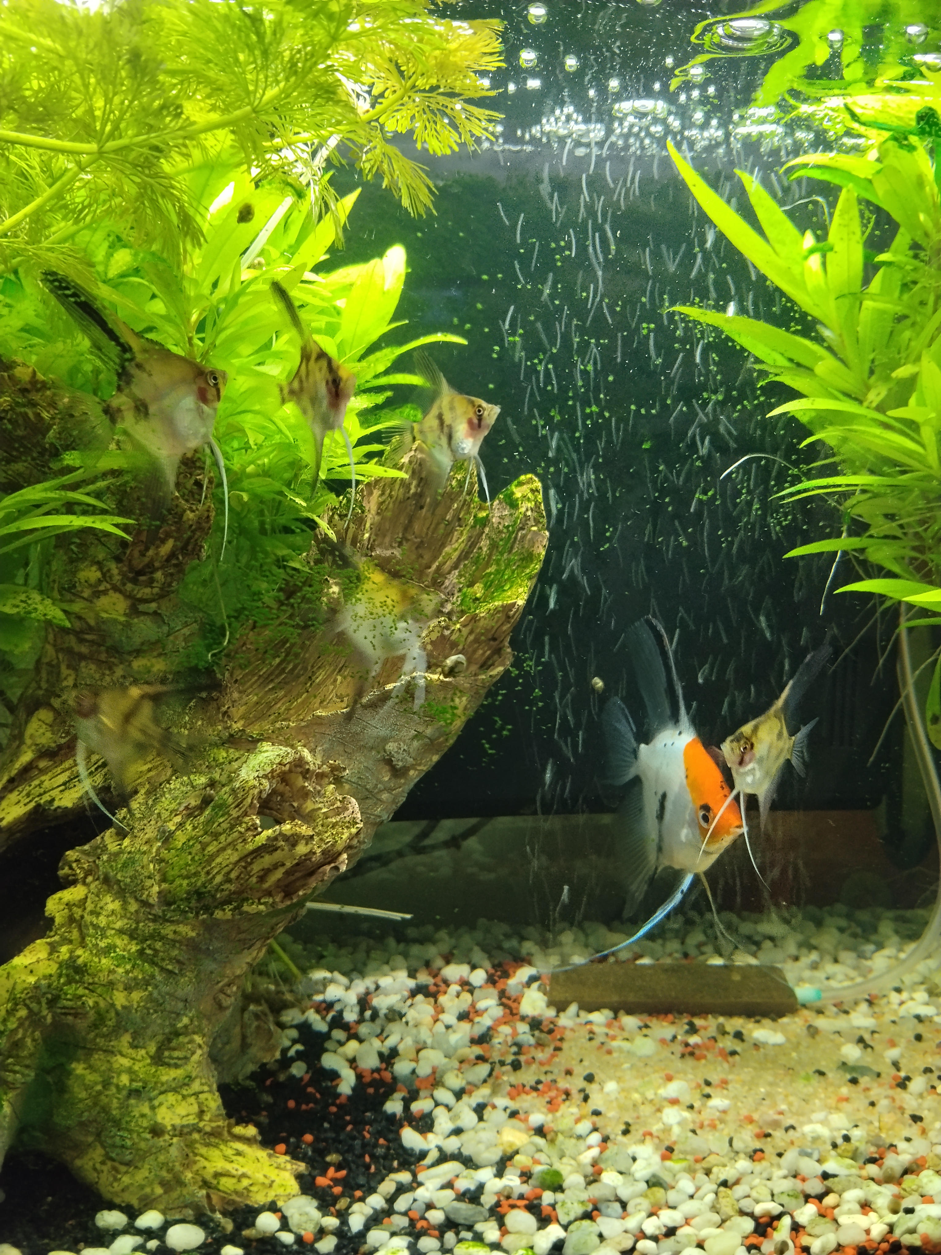 Jeunes Scalaires nés fin décembres 2025 Parents: Scalaire marbré doré (male)/Scalaire koï (femelle) à prendre sur place, livraison possible sur un rayon de 20km