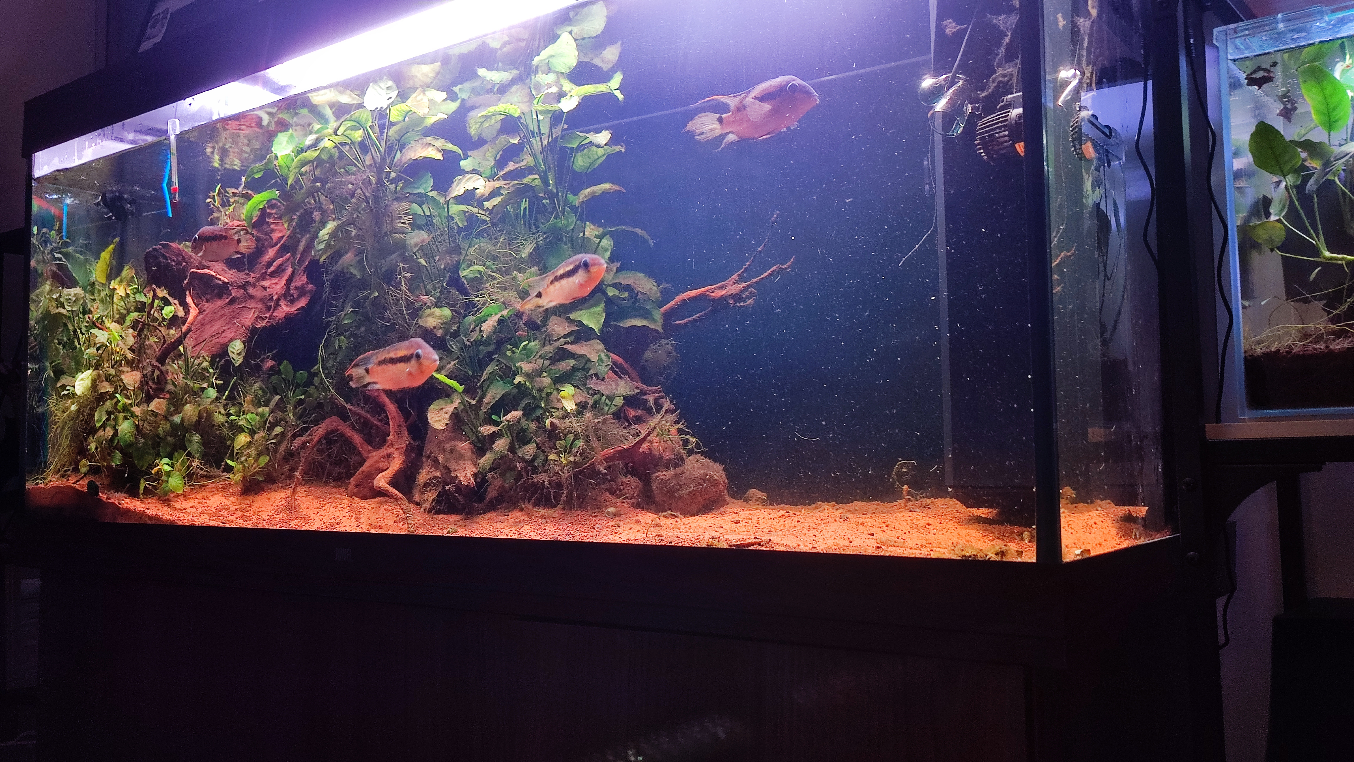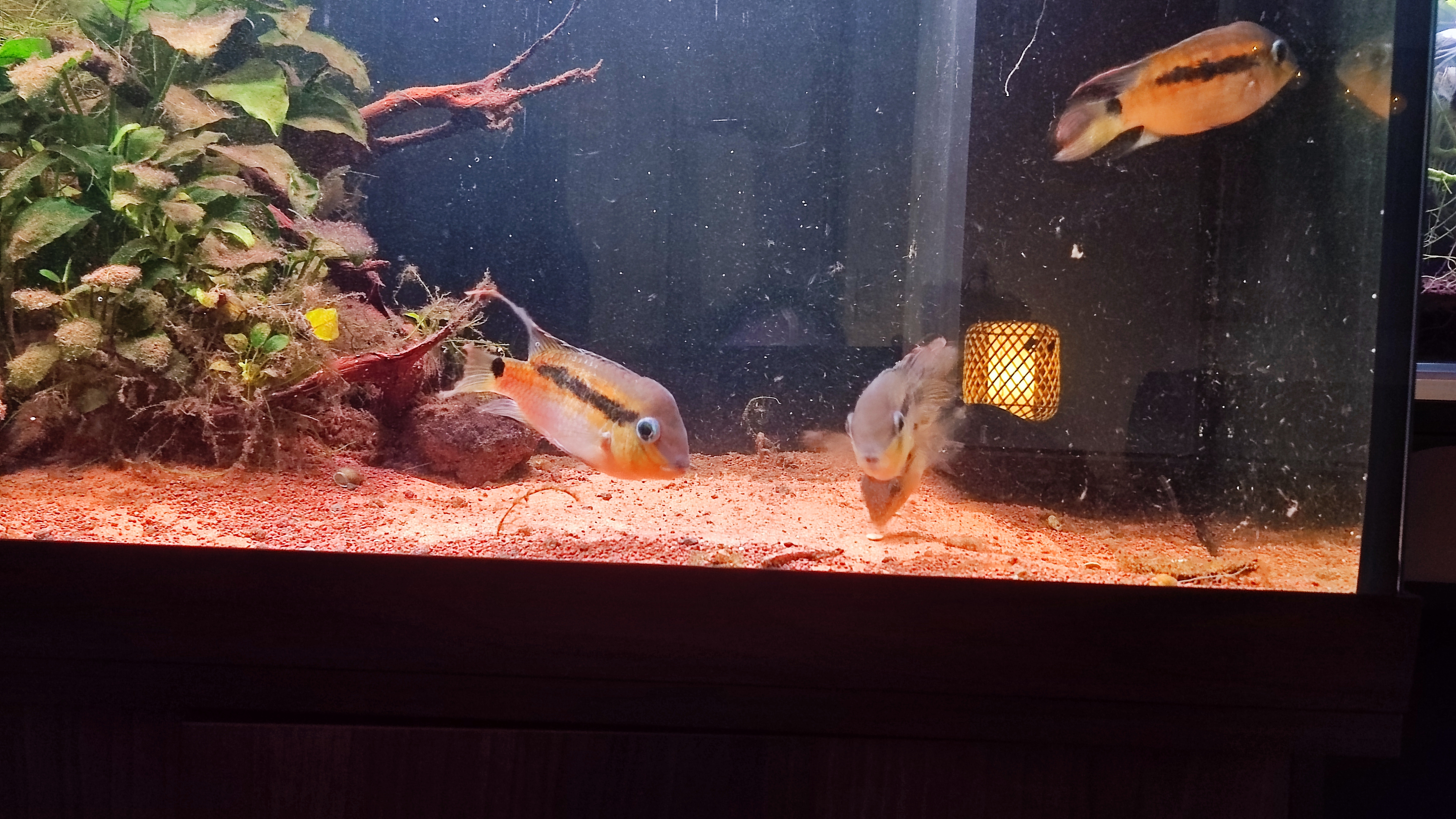 Cède 5 Krobia aussi appelé Itaniy, cichlidé sud-américain originaire de Guyane, ils sont mature et acclimatés aux granulés avec apport de vers Pinkie de temps en temps, groupe composé de 2 mâles et 3 femelles.