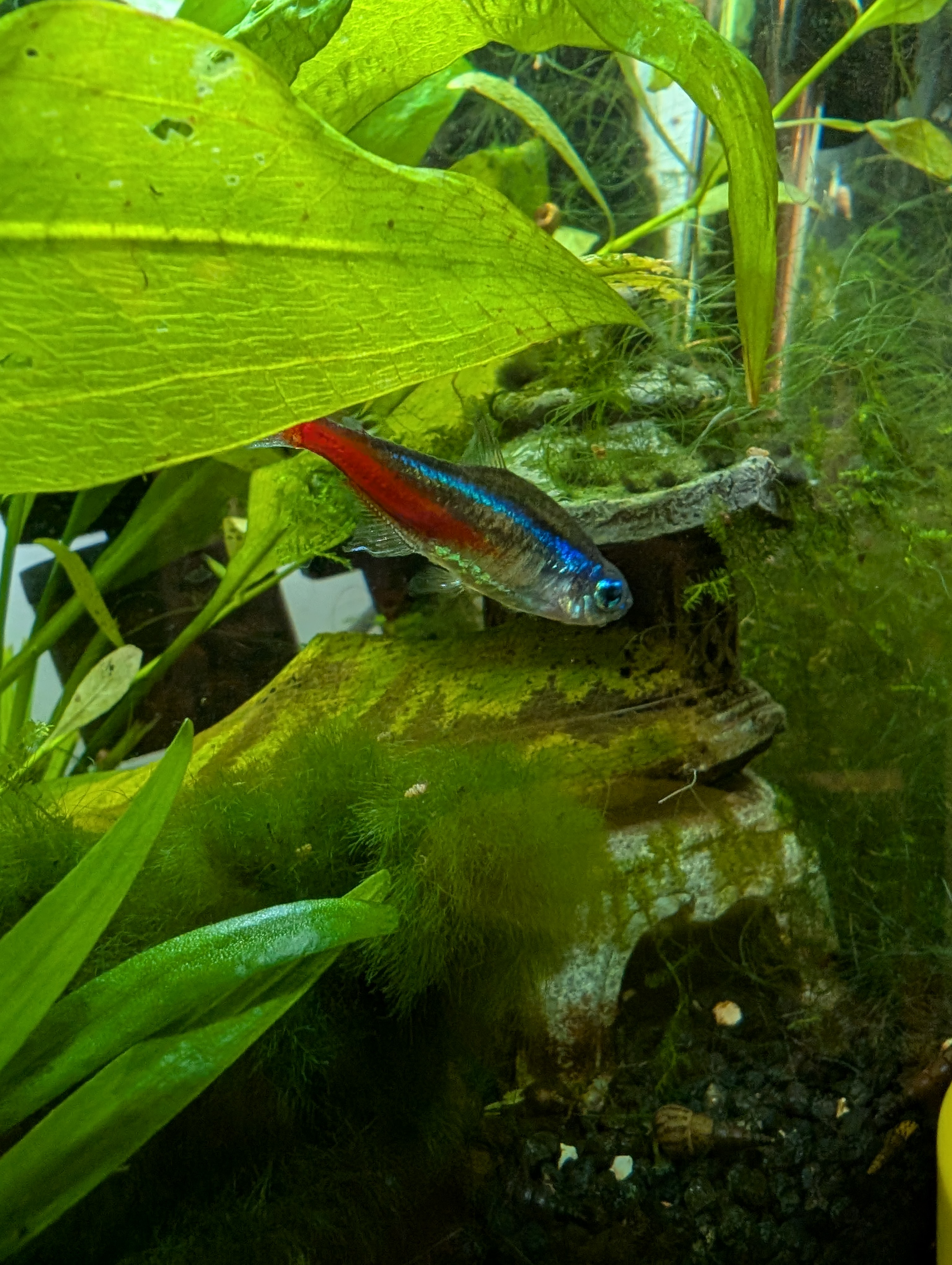 Donne mon dernier néon avant de démanteler complètement on aquarium. Je vais vendre les plantes par la suite quand il n'y aura plus d'animaux.