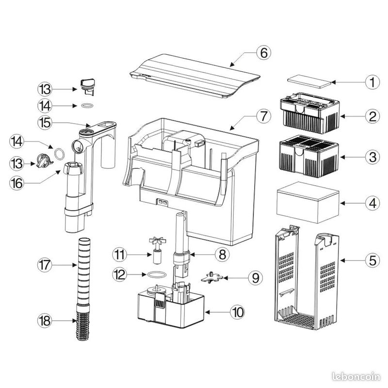• Filtre suspendu cascade CBG-500 pour aquariums