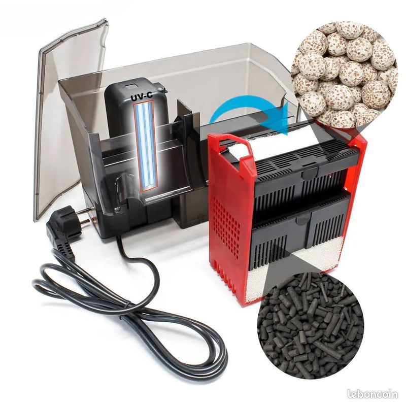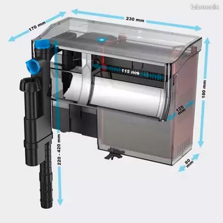 [Hang on filter CGB-800] – Le filtre suspendu offre une filtration optimale pour aquariums de 75 à 190 litres, avec une capacité de pompe de 800 l/h et une consommation énergétique de seulement 5 W.