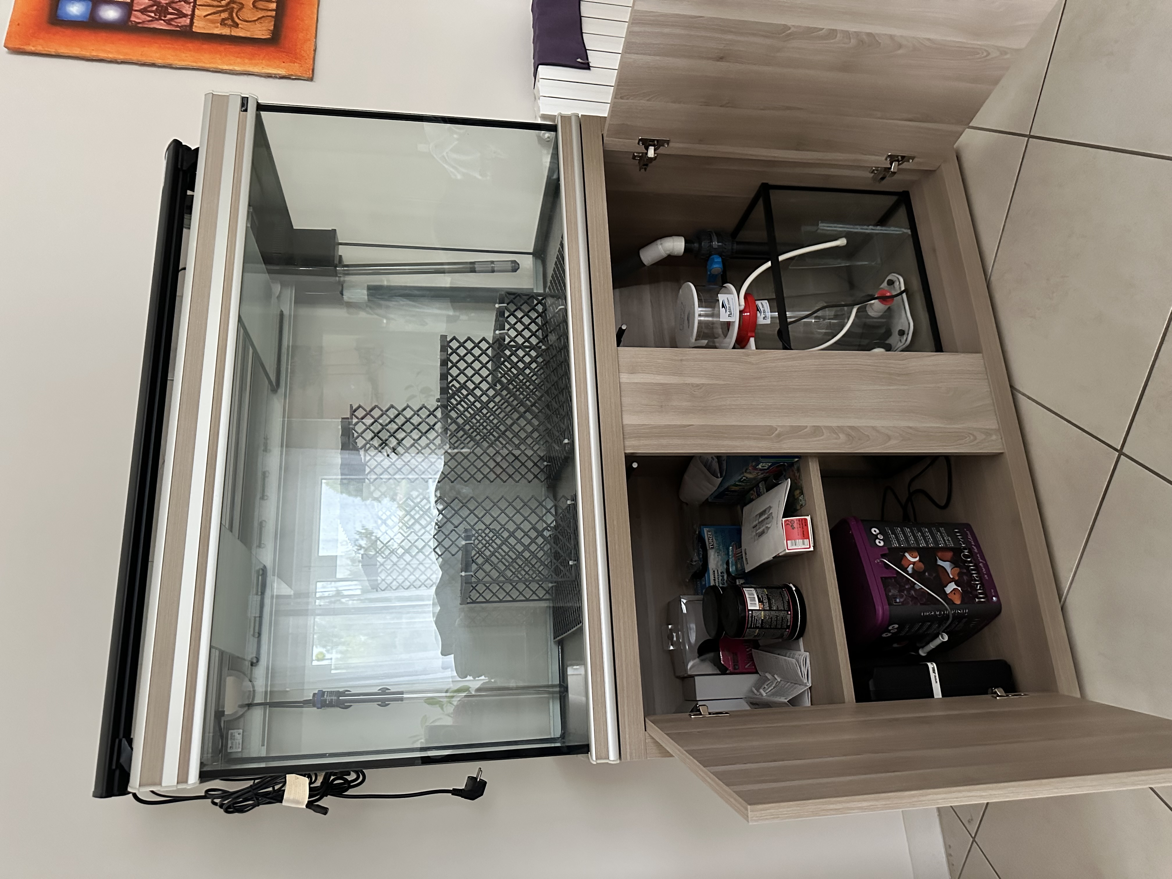 Vends aquarium 320 litres Meublé, bac décantation, écumeur, venturi, rampe éclairage. . . Jamais servi.