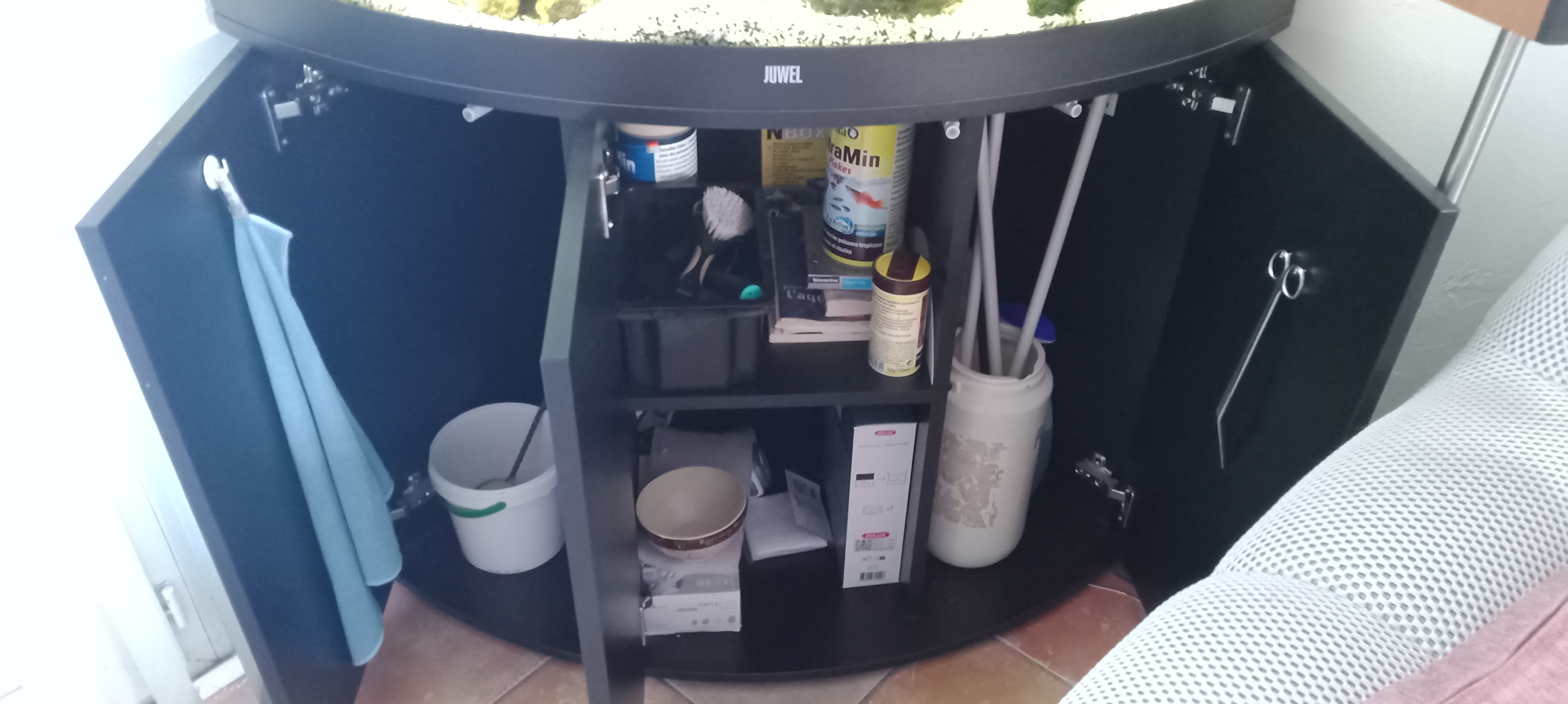 Aquarium Trigon 190 litres sur meuble, état comme neuf. Moins de deux ans, complet avec sable et décor, prêt à mettre en service. Valeur à neuf 1000€