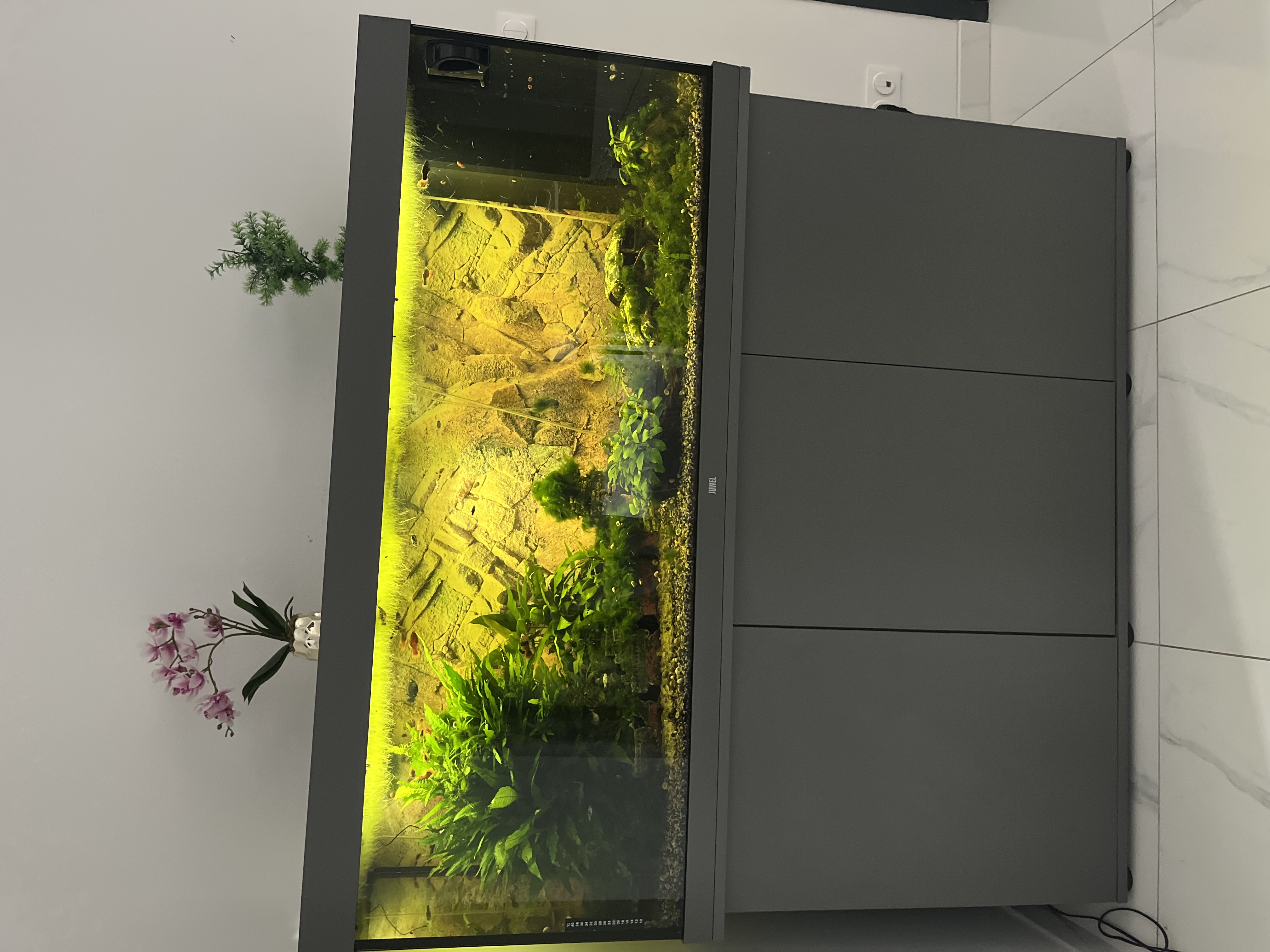 Vends ce très bel Aquarium Juwel Rio 450 mesure L 151 x l 51 x H 146 cm pour un volume d'eau de 450 L tout équipé d'origine ( 1 rampe d'éclairage composée de 2 tubes à LED Juwel, un système de filtration adapté ainsi qu'un chauffage de 300 watts, pompe à air..) très facile d'entretien avec son meuble.